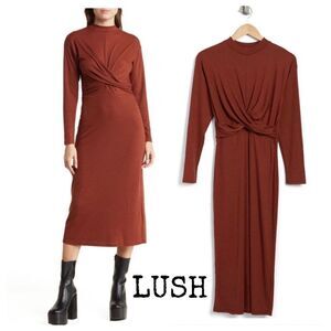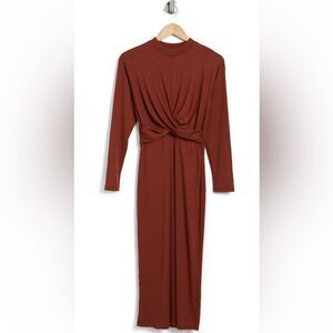 Mock neck, ribbed, midi, long sleeve dress- Size XS