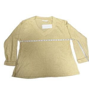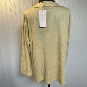 Keywords: Lush blouse, women's tunic, yellow blouse, V-neck, long sleeve, casual wear, fall fashion, relaxed fit, ribbed texture, machine washable, new with tags, textured knit, rolled cuffs, solid pattern, women's fashion.