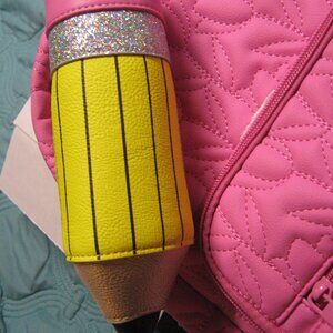 NWT Luv Betsey by Betsey Johnson Kai Quilted Pink Backpack w/ Pencil Case. Add a playful touch to your everyday carry with this eye catching quilted backpack featuring a pencil case. Designed in Betsey Johnson’s signature style, this compact backpack features a quilted faux leather exterior enhanced with charming floral stitching and stars and hearts interior for a fresh, feminine vibe. An adorable, pencil shaped pencil case is perfect for keeping your essentials close at hand. Quilted pattern with logo emblem and Pink hardware. Adjustable backpack straps. Top zipper closure; two zipper pockets on the outside and two side pockets. The outermost exterior pocket has little slip pockets. Interior has one zippered pocket. It's polyurethane material, can be easily spot cleaned. Height 18", Width 12 1/2" and Depth 8".