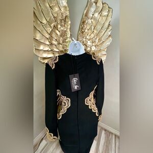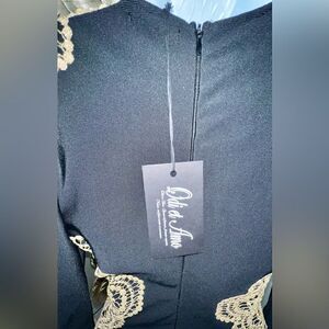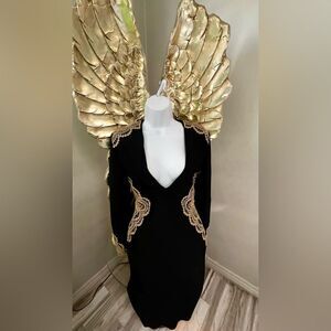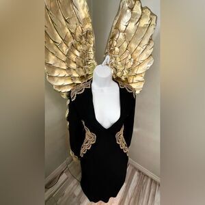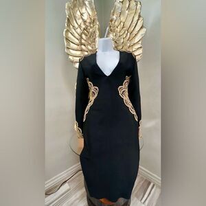 Gorgeous dress, golden lace applications, beautiful fit, ideal for parties, wedding, night out.. just perfect. No visible size tag, please see pics for measurements.