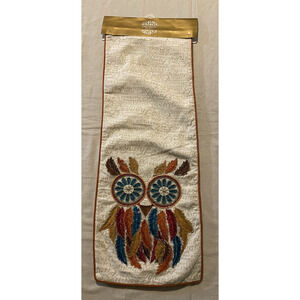 NWT Luxe Habitat Table Runner Boho Beaded Embroidered Owl Thanksgiving Fall