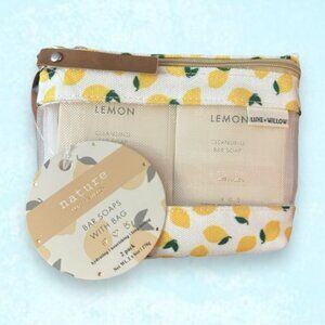 🆕 NWT Luxe + Willow Lemon Milled 2 Pack Bar Soaps with Travel Cosmetic Pouch