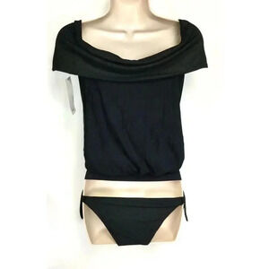 NWT Luxe by Lisa Vogel Womens Black Tankini Top Bikini Bottom Set 2 Pc Size SM