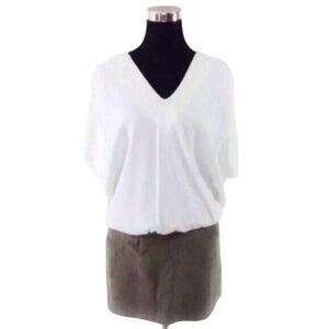 NWT Luxury Designer Jay Ahr White & Taupe Suede Skirt Mini Dress
