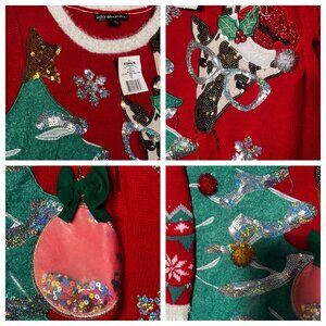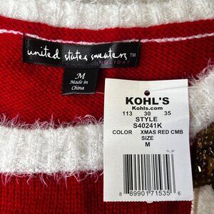 NWT Christmas Sweater United States Sweaters Red Festive Tree Reindeer Ornament SIZE M