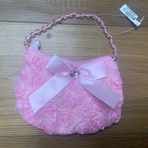 New with tags. Purchased from M Frederic. Pink children’s purse with bow and rosette detail.