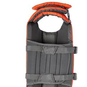 See photos for details. Item is NWT. I think the size range is a bit generous; this barely fits my 44 lb 7 month old lab American field type puppy.