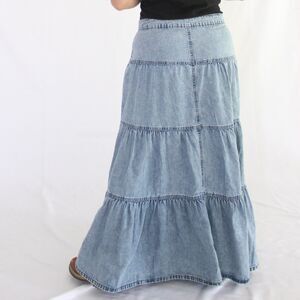 NWT M Jeans By Maurice Size 10 Long Modest Blue Jean Ruffle Maxi Denim Skirt