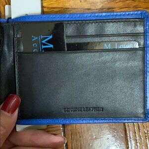 New M. Louis men’s wallet Size: 4.5” x 3.5” Black and blue trim Genuine leather No original box Tags attached