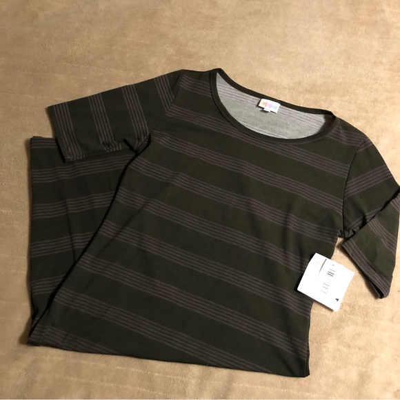Tunic dress in olive green with lavender strips. Perfect for spring and summer!