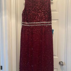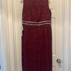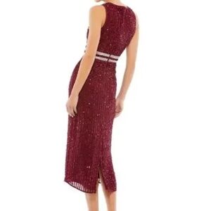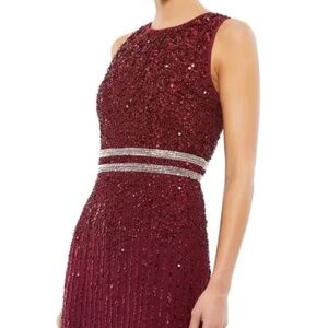 NWT MAC DUGGAL 10509 (14) Burgundy Sleeveless High Neck Beaded Midi Sheath Dress