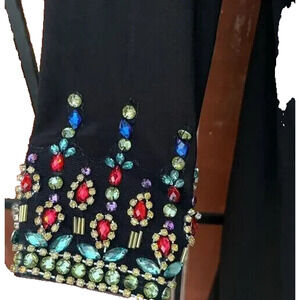NWT MAC DUGGAL 12231 Beaded Cuff Drop Shoulder Long Sleeve Gown Dress Black