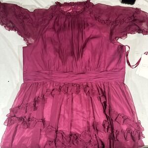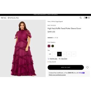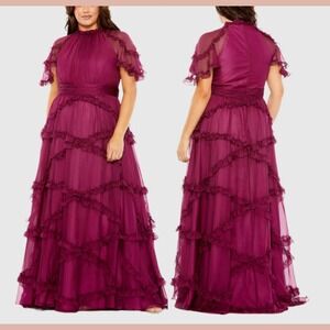 NWT MAC DUGGAL [ 18W ] 68424 High Neck Ruffle Tiered Flutter Sleeve Gown Berry