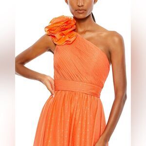 NWT MAC DUGGAL | Ruffled One Shoulder Gown Tangerine Gold Shimmer 2