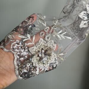 Lace embroidery complimented by exquisite beading and hand-stitched sequins