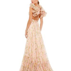 NWT MAC DUGGAL 67803 RUFFLE TIERED CHIFFON FLORAL CUT OUT FORMAL LONG DRESS PINK