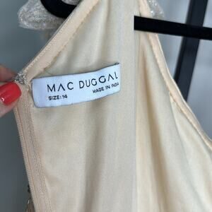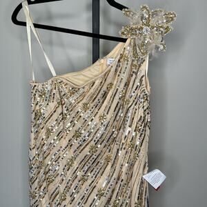 NWT MAC DUGGAL 93739 Nude Gold Embellished Floral Detail One Shoulder Gown Women‘s Size 14