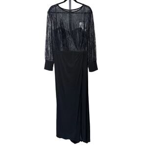 NWT MAC DUGGAL Black Sequin Lace Long Sleeve Evening Gown with Slit Women’s