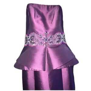 Peplum waist and trumpet/mermaid style skirt strapless gown.