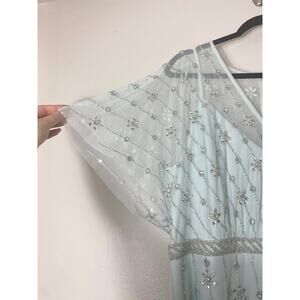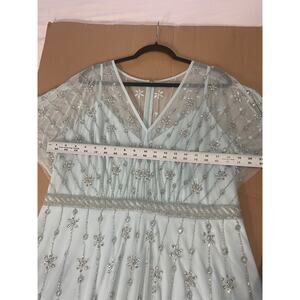 NWT MAC DUGGAL DRESS 14 BLUE V NECK EMBELLISHED FLUTTER SLEEVE A LINE GOWN 9223