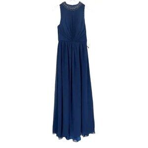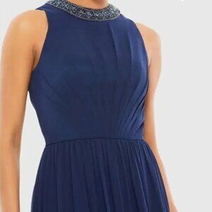 NWT MAC DUGGAL Dress 6 Evening Gown Navy Blue Bejeweled Pleated Chiffon #7969