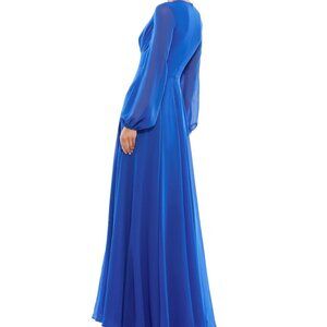 NWT MAC DUGGAL Dress Evening Gown V Neck Illusion Blue Chiffon 55682