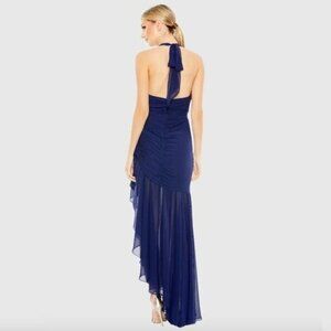 NWT MAC DUGGAL Dress Size 6 Evening Gown Asymmetrical Ruffle Hem Navy NEW #7971