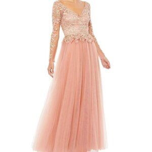 NWT MAC DUGGAL EMBROIDED LACE LONG SLEEVED ROSE GOLD GOWN SZ 8 11168