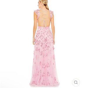 Mac Duggal 93692 Pink Floral Embellished Lace Up Corset Open Back Gown Size 14