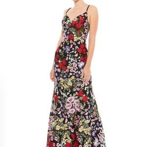 NWT MAC DUGGAL FLORAL EMBROIDERED LACE SWEETHEART NECK LONG GOWN BLACK 67473