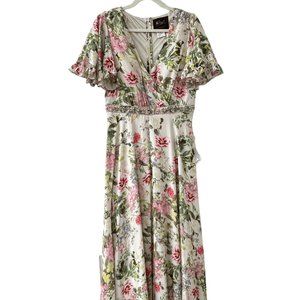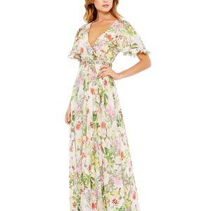 NWT MAC DUGGAL FLORAL PRINT FAUX WRAP FLUTTER SLEEVE A-LINE GOWN 9079