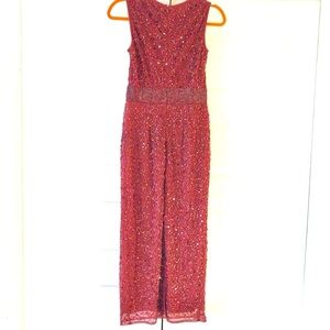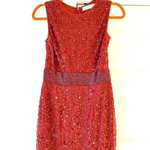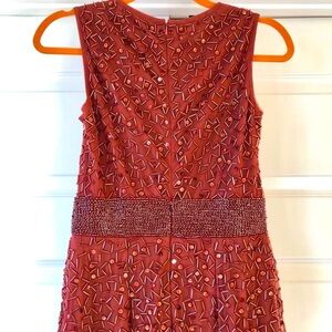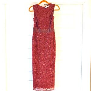 NWT MAC DUGGAL Geometric Beaded Sequin Midi Sheath Dress Brick Red 4 MSRP $400