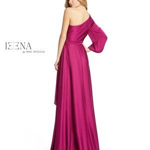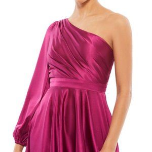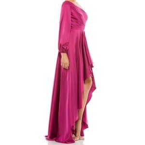 NWT MAC DUGGAL HIGH LOW ONE SHOULDER FLOWY LONG GOWN BERRY 49141