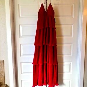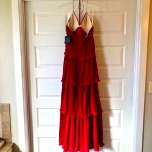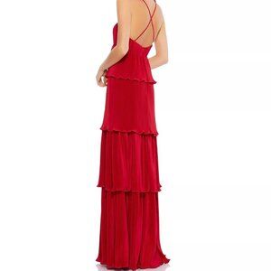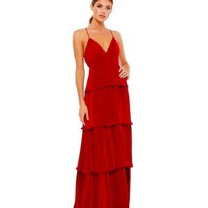 NWT MAC DUGGAL Ieena Red Spaghetti Strap Ruffle Layered Tiered Gown Dress SZ 4