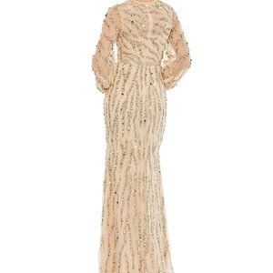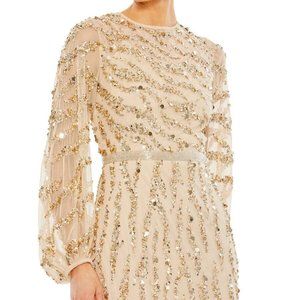 NWT MAC DUGGAL TRUMPET PUFF SLEEVED HIGH NECK EMBELLISHED GOWN GOLD 93789
