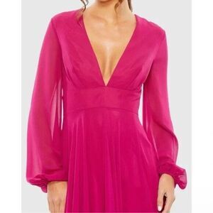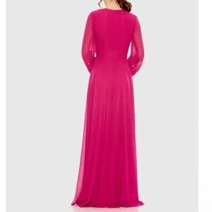 NWT MAC DUGGAL V-NECK ILLUSION LONG SLEEVE GOWN MSRP $398 SZ 12 55682 BERRY