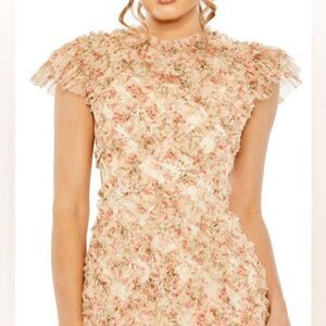 NWT MAC DUGGAL 8060 Ruffle Tiered Short Sleeve A Line Dress Beige 2