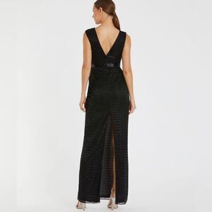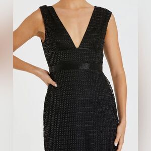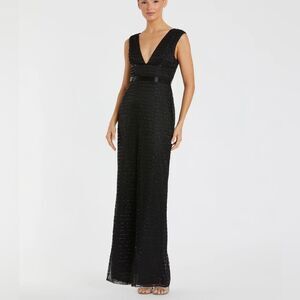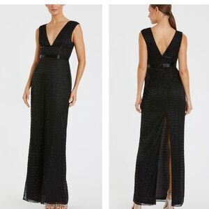 NWT MAC DUGGAL Black Beaded Cap Sleeve V Neck Column Gown size 8