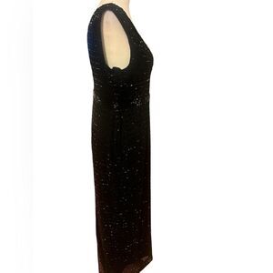 NWT MAC DUGGAL Black Beaded Cap Sleeve V Neck Column Gown size 8 stunning details to the gown all beads in tact comes with extra beads