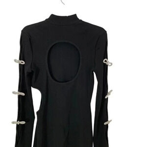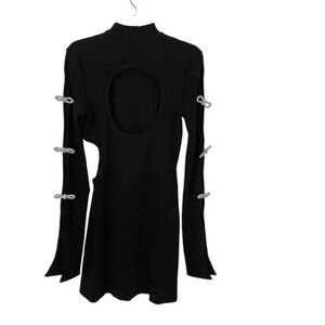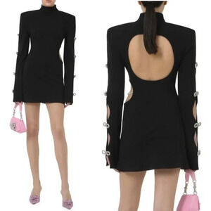 NWT MACH & MACH Crystal Embellished Bow Cut-Out Mini Dress Black Knit Size 10