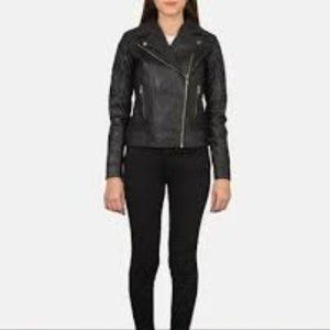 biker jacket crafted from supple sustainable leather. Tailored to a straight silhouette, it features the classic asymmetrical closure and snap notch collar. Effortlessly layered, the relaxed fit and action back ensure ease of movement. Finished with signature silver-tone hardware and zippered pockets for a timeless look.
