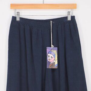 NWT MADE IN ITALY Corduroy Wide Leg Palazzo Pant Navy Elastic Waist OS