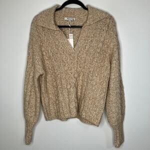 NWT MADEWELL Cotton-Merino Wool Blend Cable-Knit Sweater Sand Tan XXS