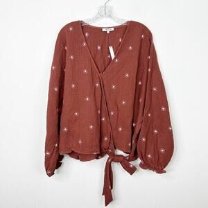 NWT MADEWELL Embroidered Floral Lightspun V-Neck Wrap Top Sz. 4x