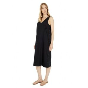 NWT MADEWELL Linen-Cotton Side-Button Midi Dress/ BLACK