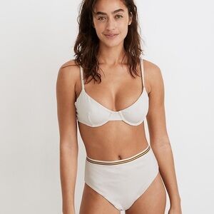 NWT MADEWELL Madewell Second Wave Stripe-Trim Ribbed Underwire Bikini Top