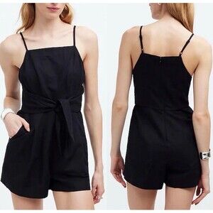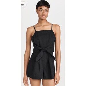 NWT MADEWELL Romper Women 4 Tie-Waist Linen Blend Black