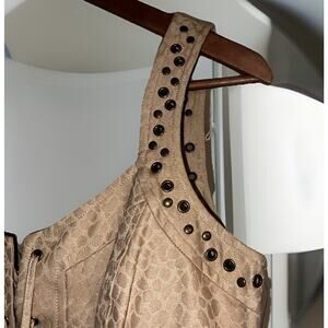 NWT MADISON APRIL KHAKI DRESS SIZE 6 ANIMAL PRINT DRAWSTRING NECKLINE