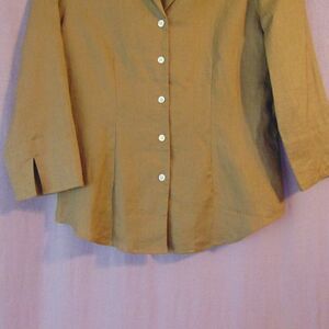 NWT MADISON STUDIO Brown 100% Linen V-Neck Collared Long Sleeve Flair Jacket 4