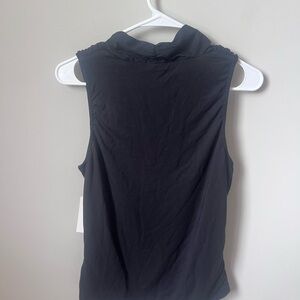 Chic black tank top with ruched detailing. Versatile and stylish for any occasion.